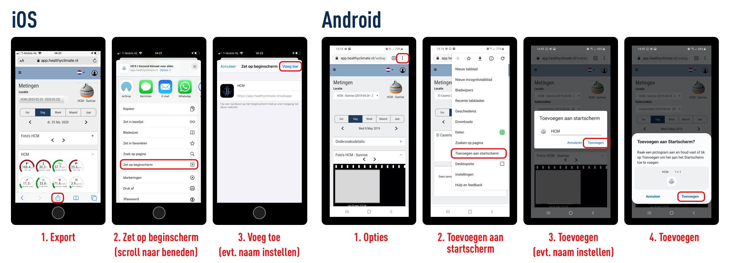 Om de Healthy Climate web-app als een icoon op het homecreen van je mobiele telefoon te plaatsen, volg je de volgende stappen voor IOS en Android.